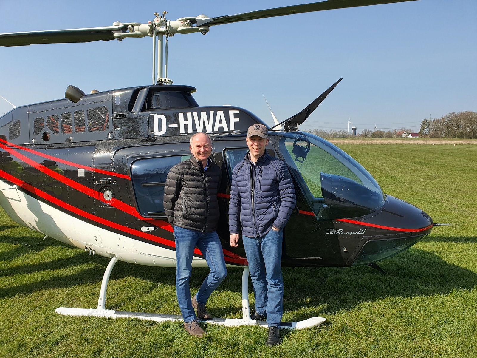 Wir sind zwei Privatpiloten mit einer Fluglizenz für Hubschrauber. Wir betreiben diesen Hubschrauber zu "Zweit" und haben "Beide" jeweils eine Flugerfahrung von über 750 Flugstunden.